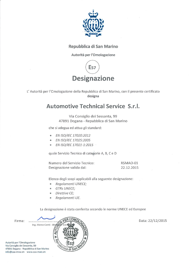 Designación por parte de la Autoridad de Homologación de la República de San Marino.